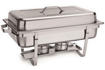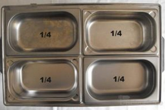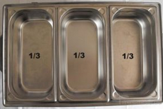 Optional halten wir auch andere GN-Behälter (Speiseeinsätze) für Sie bereit, z.B. 1/2, 1/3, 1/4. So können Sie den Chafing Dish nach Ihren Wünschen mit den Speisen bestücken.